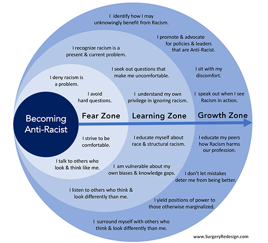 As you engage in anti-racist work, you may find yourself traveling from the Fear Zone to the Learning Zone to the Growth Zone. Where within this diagram do you most often find yourself at this point in time?